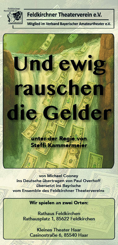 Neu ist: Wir spielen in diesem Jahr an zwei Orten. Wie im vergangenen Jahr sind wir zu Gast im Rathaus Feldkirchen. Wir haben außerdem die Möglichkeit mit zwei Vorstellungen zu Gast im Kleinen Theater Haar zu sein.